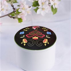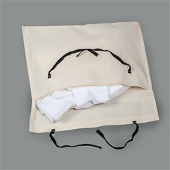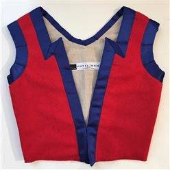 Bunaden er laget med utgangspunkt i en folkedrakt fra Sotra som er datert til rundt 1850. Livet er laget i håndvevd ullstoff med svarte fløyelskanter.