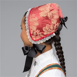 Hodeplagget synliggjør sivil status. Kanting på huen er ulik for gifte og ugifte. Den som er avbildet her er for gifte. Med mørk blå kant.