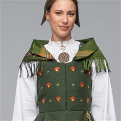 Bilde av Rekonstruert kvinnebunad fra Sotra, 1850 Se bilde av hele bunaden