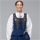 Påtegnet materialpakke for å brodere Ådalsbunad dame. Påtegningen er silketrykket. Bunaden kommer kun i blå, og i str 40/44. Størrelsen justeres ved montering. Trenger du f.eks str 36, justeres det ned til dette når man monterer.