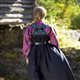 Lailastakken kan broderes i to forskjellige garntykkelser. Den røde fargekombinasjonen er i tynt garn, mens den lilla fargekombinasjonen er i tykt garn.
