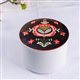 Dette smykkeskrinet har motiv fra veska som brukes til flere varianter av Trønderbunaden. Det indre skrinet er lufttett og i tre etasjer. Sølvet holder seg blankt og fint i lang tid.