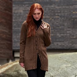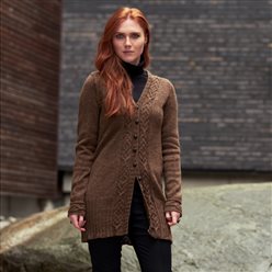 Jakken strikkes i Sølje pelsullgarn. Garnpakken inneholder oppskrift og garn nok til den aktuelle størrelsen.Intrikate spydfletter løper langs ryggraden på denne jakken, før de øverst flyttes mot skuldrene. På forstykket følger fletten linjen langs v-halsen. Ermene har en spydflette som løper rundt nederst, før den øvre delen strikkes rundt i glattstrikk. Den a-linjede jakken heter BARRA - keltisk for spyd.
