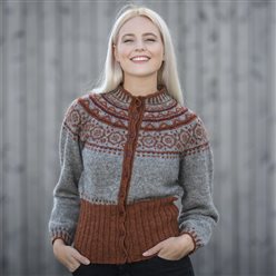 Årets Redd Barna strikk! Strikkepakke på nydelig jakke strikket i Sølje pelsullgarn. Legg merke til det lille hjerte som er lagt inn i mønsterborden, et symbol for hjertevarme. 12% av salget går til Redd Barna.