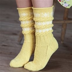 Kløversokken strikkes i Fjell sokkegarn. Kløversokken – garnpakken inneholder oppskrift og garn nok til største størrelse.