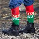 Sokker med ikonisk Kvikk Lunsj-design. Oppskriften er utarbeidet for størrelsene 38/39 og 43/44 og man kan velge mellom lave sokker, halvhøye sokker og nikkersstrømper. Garnpakken inneholder oppskrift og garn nok til nikkerstrømpene, samt ett originalt Kvikk Lunsj merke til å sy på. Sokkene strikkes i Fjord Sokkegarn 2, som er et godt og slitesterk garn. Fargene er spesialfarget for Kvikk Lunsj og forbeholdt garnpakkene.
