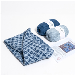 Strikkepakken inneholder mønster på svensk, og garn til en lue i damestørrelse. Luen har 2 latviske fletter og mønsterstrikk i 3 farger på oppbretten, og 2 farger på selve luen.