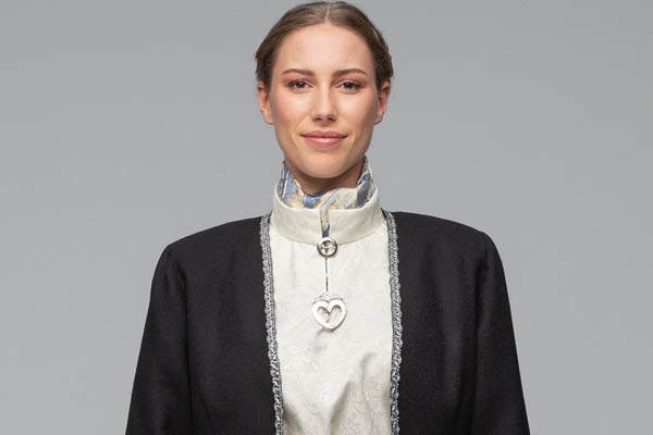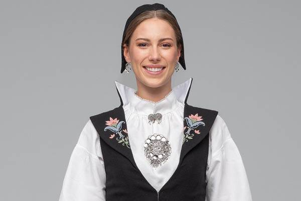Alle våre damebunader sys og tilpasses til deg her hos oss i Hønefoss. Stoffene og brodergarnet er så langt det lar seg gjøre produsert i Norge. Bunadene blir også håndbrodert i Norge. Å bevare kunnskapen rundt dette er viktig for oss.