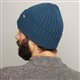 Ensfarget ribbestrikket lue i 100% norsk ull. One size.