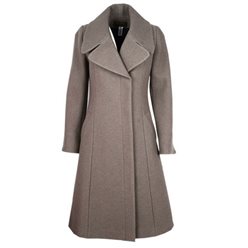 Varm, kledelig kåpe i tovet Merinoull. Skjev lukking og god passform. En av våre bestselgere. Kåpen er "normal" i størrelsen. ( M tilsvarer ca. str. 38 - 40 )