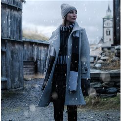 Varm, kledelig kåpe i tovet Merinoull. Skjev lukking og god passform. En av våre bestlegere. Kåpen er "normal" i størrelsen. ( M tilsvarer ca. str. 38 - 40 )