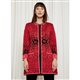 Denne lange cardiganen har et strukturelt botanisk mønster som refererer til norsk folklore. 75% Merinoull, 25% Silke
