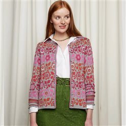 Mellomlang jakke fra vår/sommer -18 kolleksjonen. Mønsteret er inspirert fra et gammelt indisk tekstil som ble vevd til det japanske markedet. Jakken har en rett klassisk form. Perfekt over en silkebluse eller en enkel topp. 75% merinoulll og 25% silke.