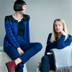 Mellomlang jakke med en klassisk passform og rund hals. Inspirasjonen til dette årets høstkolleksjon kommer fra den tyske fotografen og kunstneren, Karl Blossfeldts botaniske nærbilder. Mønsteret er en forenklet utgave av en Julerose. Jakken har en strukturstrikk som fremhever mønsteret.