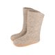 Tøffelen er håndtovet av 100 % ufarget merinoull. Det er ikke benyttet noen kjemikalier i produksjonen; kun såpe og vann.