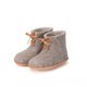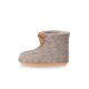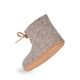 Tøffelen er håndtovet av 100 % ufarget merinoull. Ullens isolerende og pustende egenskaper holder barnets fot tørr og varm. Sålen er laget av vegetabilsk garvet skinn fra storfe. Det er kun brukt naturlige oljer i bearbeiding av skinnet. Den semskede sålen gir naturlig anti-skli effekt.