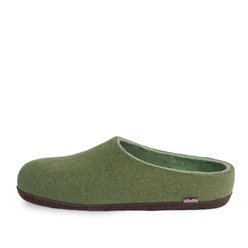 En lav modell som er lett å ta på. Tøffelen er laget av 100 % merinoull, med såle av semsket skinn og finnes i flere fargekombinasjoner.
