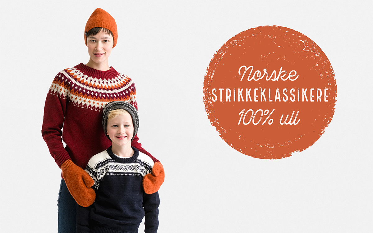 Kjøp dem ferdig strikket, eller strikk dem selv. Velg den klassiske varianten, eller velg en med en twist. Våre strikkeklassikere er i 100% ull og er produsert i Norge.