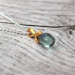 Ask halskjede med knopp anheng m/grønn fluoritt, forgylt
