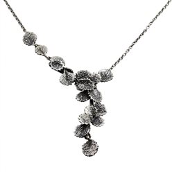 Et eventyrlig halskjede inspirert av gammel filigransteknikk, sagn og eventyr. Laget i oksidert sølv 925 med lenke i diamantkuttet anker 0,4. Lengde 42-45cm. Art nr. 320198-50