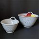 BÆRbar Lava er hånddreid i en grov steingods med vakre spetter. De er glasert i en blank hvit glasur.