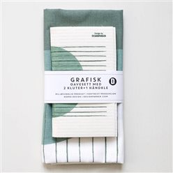Gavesett med 1 kjøkkenhåndkle og 2 kluter i matchende design. Norsk design, produsert i Sverige.