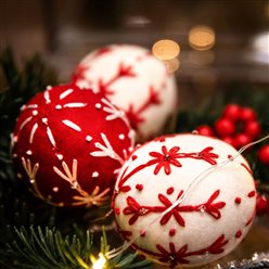 Disse tradisjonelle julehjertene i naturfarget filt med brodert mønster kommer i en 4pk. 2 røde hjerter, og 2 hvite hjerter i hver pakke. 6 cm. Fine til å henge på juletreet, som dekorasjon i vinduet