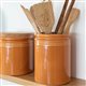 Krukke i leirgods. Inner D: 14/H: 14 cm. Kan brukes til oppbevaring av kjøkkenredskaper og mat. Krukken egner den seg også veldig godt som potteskjuler.