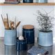 Herlig krukke som kan brukes til oppbevaring av mat, kjøkkenredksaper og ikke minst som potteskjuler. Inner D:12/H:16 cm.
