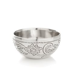 Liten skål med gjennombrutte ører. Kopi av skål fra ca. 1820. Diameter er 9,5 cm (uten ører), dybde er 3,5 cm.