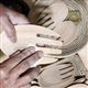 Salatbestikket består av 2 deler, og hver del måler 9×15,5 cm og er designet som en håndflate med 4 fingre og en sentrert fordypning for et godt grep.