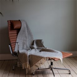 Mikkel pledd og puter kombinerer inspirasjon fra Bauhaus bevegelsen og norsk tradisjonell veving på den ene siden med en moderne og utforskende bruk av farger på den andre. Norsk finull. Format: 100x65 cm.