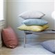 De flettede båndene gir en grov tekstur og en fin stofflighet til putene.